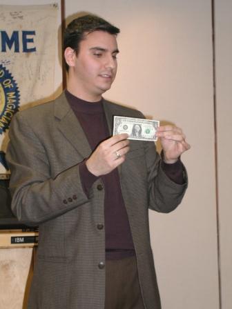 | Mike's presentation style keeps his act on a roll...even after an impromtu "bark" from our own Magic Mascot | |