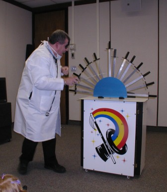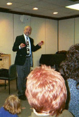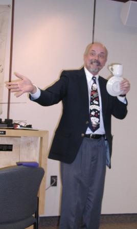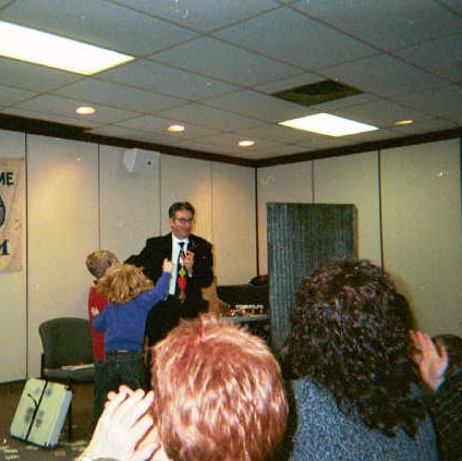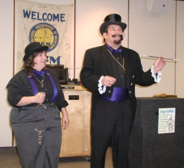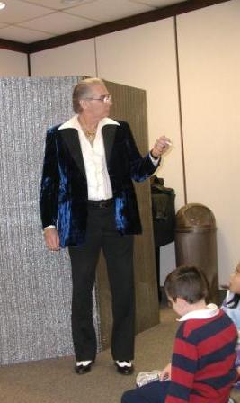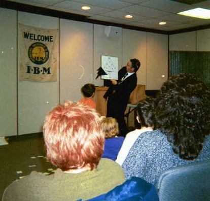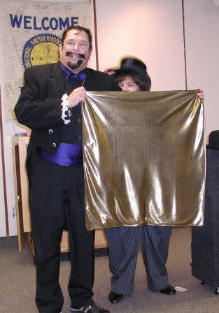 | Mike's presentation style keeps his act on a roll...even after an impromtu "bark" from our own Magic Mascot | |